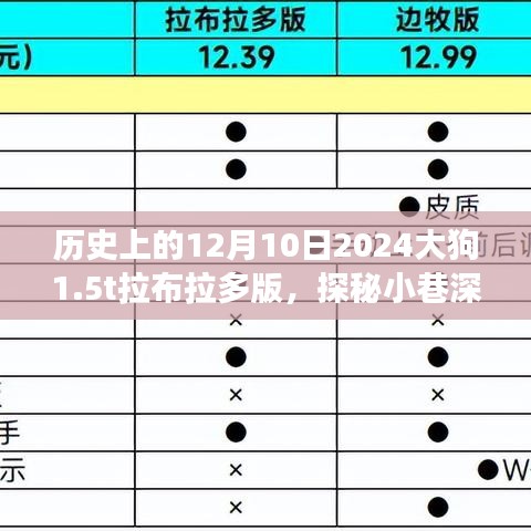 摘要:本文将介绍历史上的12月10日,聚焦于一款特别的车型——大狗拉布拉多版。文章将探索一家独特的小店,展示大狗拉布拉多版的历史之旅。这家店铺的特色在于其深度挖掘小巷深处的独特风味,提供与众不同的体验。该车型拥有强大的性能和卓越的装载能力,能够承载高达1.5吨的货物。本文旨在让读者了解大狗拉布拉多版的独特魅力和历史价值。
